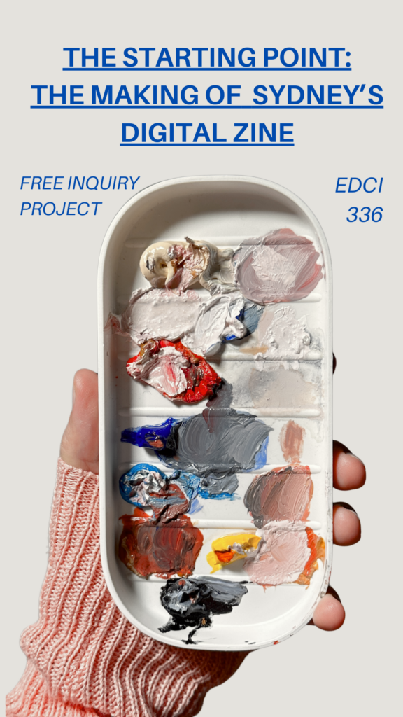 My main goal for this week was to focus more on improving my personal zine by intentionally breaking away from the templated structures I felt I was most familiar with and typically relied on. While my initial inquiry question asked how digital scrapbooking tools can capture genuine human connection and artistic authenticity, I’m starting to realize that authenticity is often found through the mistakes and imperfections, rather than the ‘perfected’ digital design I was aiming for. While my last inquiry reflection focused on more general observation and experimenting with the tools at hand, this week is more focused on digital and technical experimentation. I wanted to work on slowly overcoming my reliance on “overly templated” layouts, so I started to use Canva for Education as a starting point, moving away from preset templates towards building my own digital creations and designs.