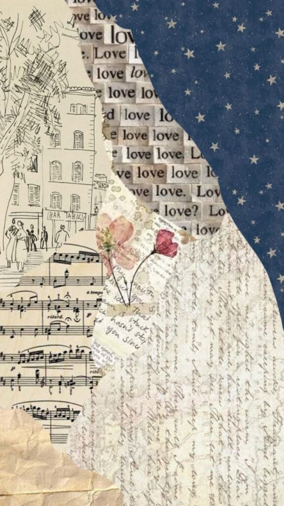 I’ve been working on a digital layering model that begins with a foundational background texture or photo that I like and can use as a base layer. I go between using Unsplash, the Internet Archive and licensed scans from Creative Commons. I’ve also been experimenting with the “Edit Image” options within settings so I can add custom drop colours and shadows, as well as stickers and certain designs that I want to include throughout.